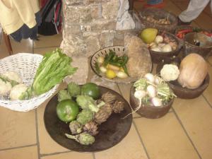 בוסתן אורגני עם ירקות ופירות, צמחים ותבלינים