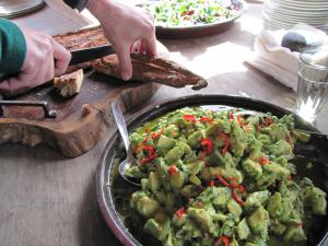 בביתו של ארז חלונות ענק המשקיפים על הבוסתן האורגני, הבנוי טראסות מסורתיות מאבן מקומית, ומהמרפסת, שם נערכת קבלת הפנים, משקיף נוף אינסופי של מרחבי הגליל הירוקים הפרוסים לרגלי האורחים.